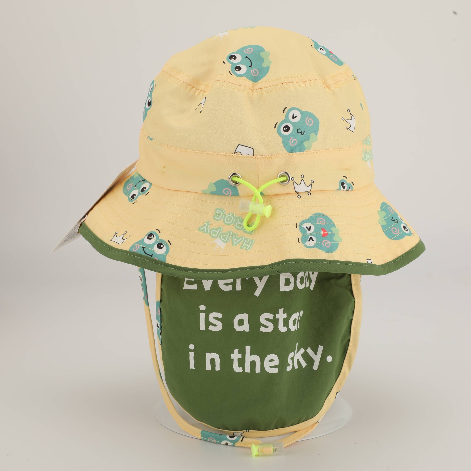 Frog Print Neck Protection Childrens Sun Hat - Yellow